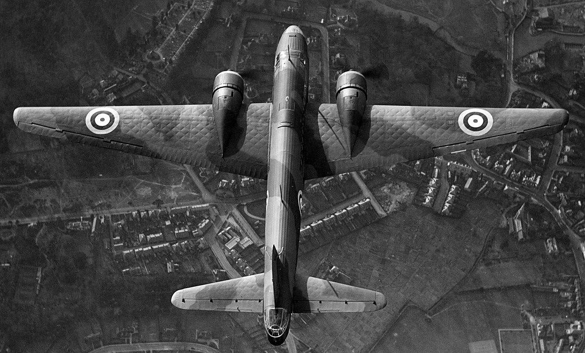 Vickers Wellington Mk. I (Serial No. P9249), overhead view, ca 1940.
