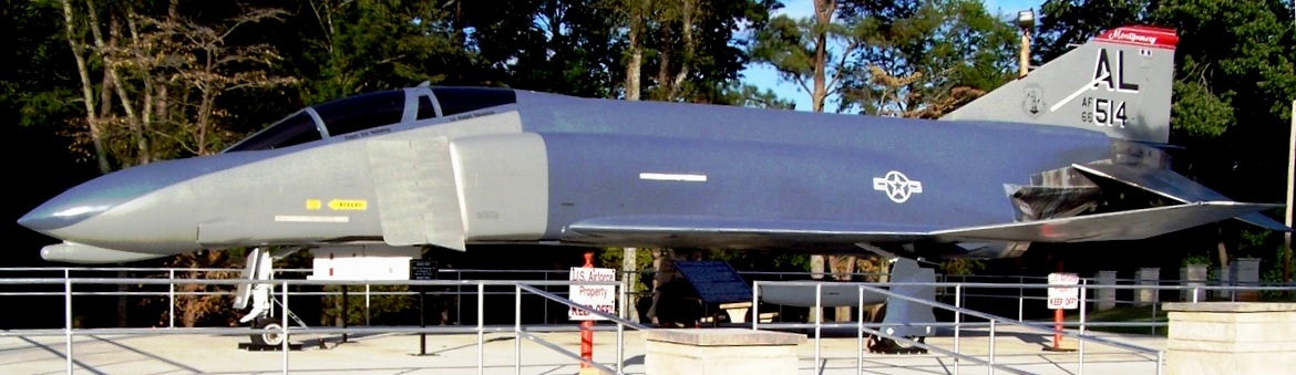 McDonnell F-4C Phantom II (Serial No. 64-0851), FG, C/N 1210.  This aircraft is mounted on a pylon in front of the Tuskegee Institute.