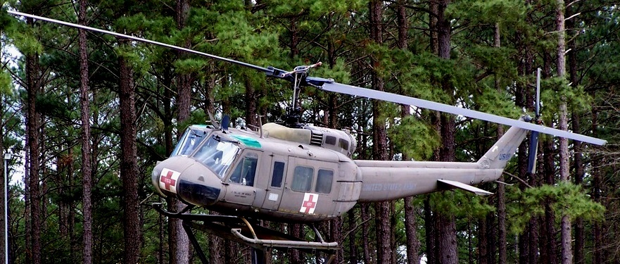 Bell UH-1H Iroquois Helicopter (Serial No. 66-16907), C/N 9101.  This helicopter is mounted on a pylon at the Tuscaloosa County Veteran’s Memorial at the University Shopping Mall.