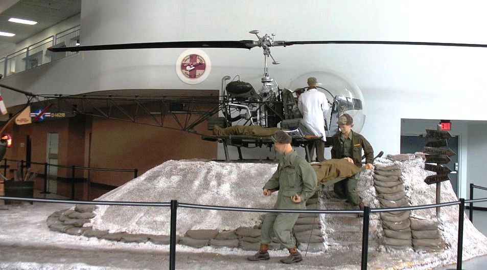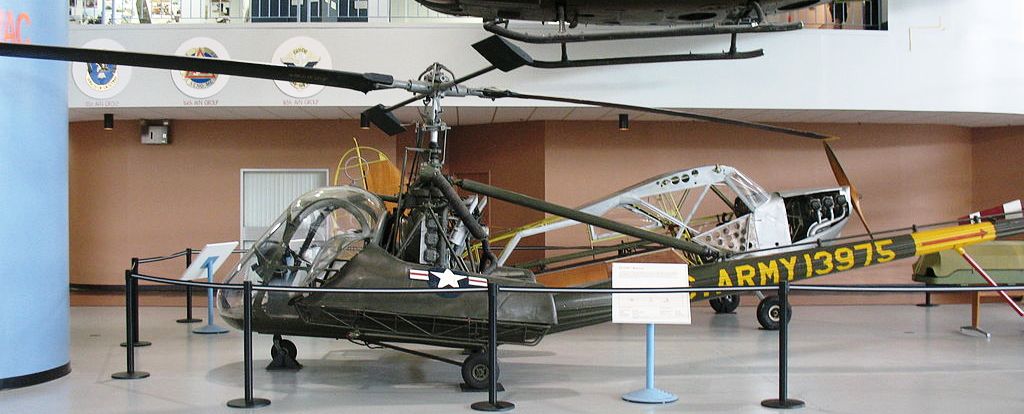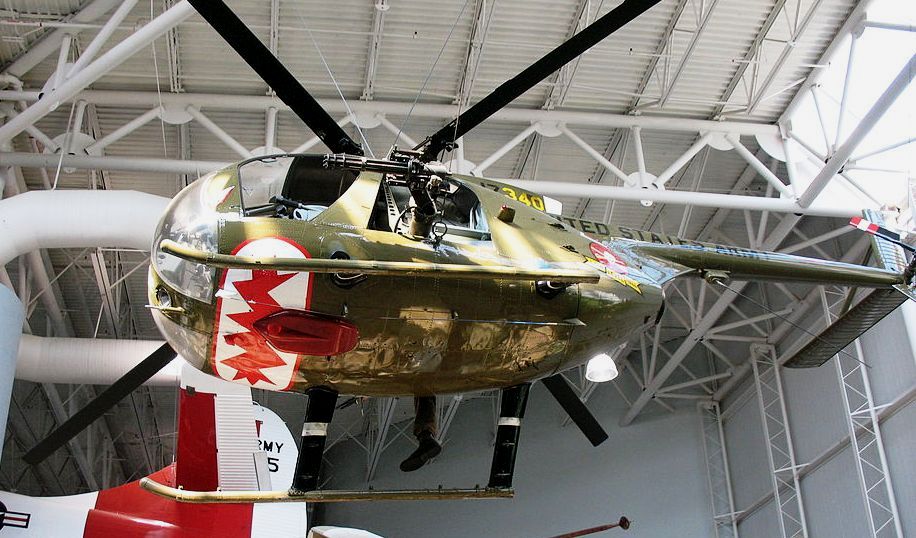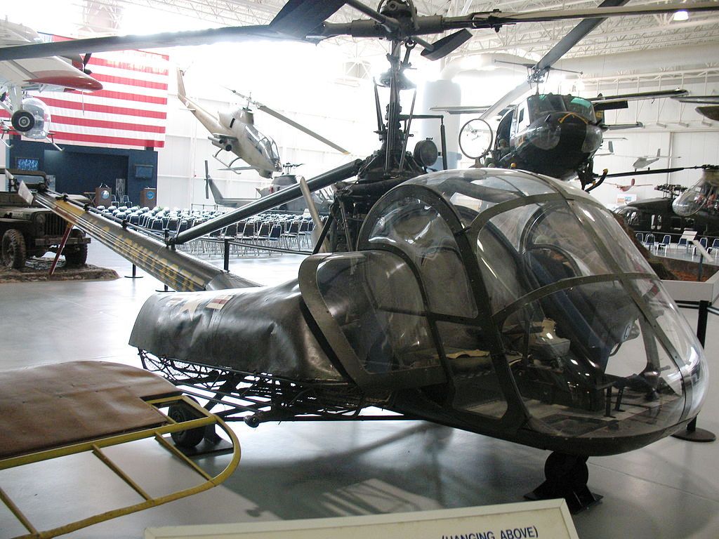Hiller OH-23B (UH-12) Raven Helicopter (Serial No. 51-16142), C/N 296. The H-23B is a variant of the basic H-23, the Army designation for the Hiller 360 helicopter. While it was used almost exclusively as the primary rotor wing trainer at Camp Wolters, Texas, at the U.S. Army Primary Helicopter School, the Raven was also used extensively during the Korean Conflict. The twin litters with full aerodynamic covers made it the desired vehicle for front-line medical evacuations until the arrival of the OH-13.