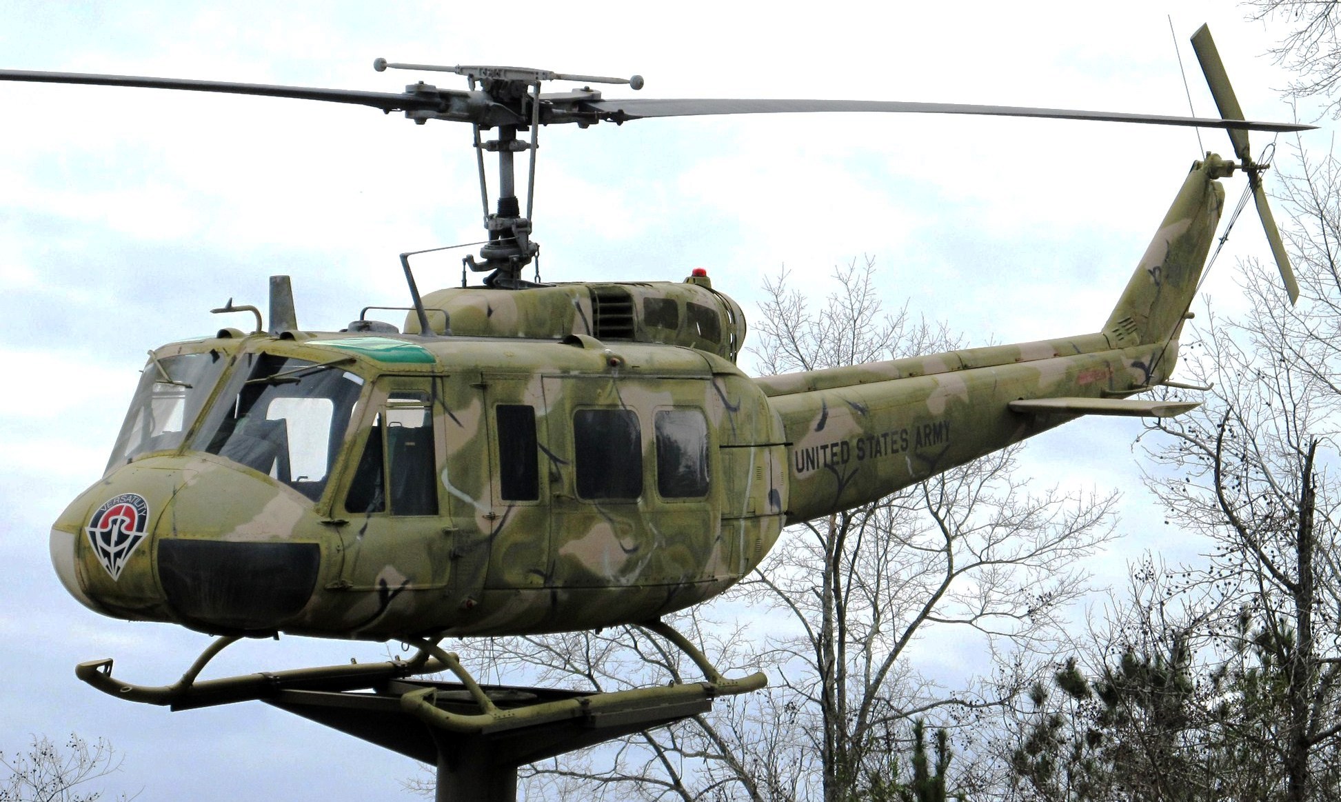 Bell UH-1H Iroquois Helicopter (Serial No. 65-9770), C/N 4814. This helicopter is mounted on a pylon located on US Hwy 231 in Ozark near Fort Rucker.