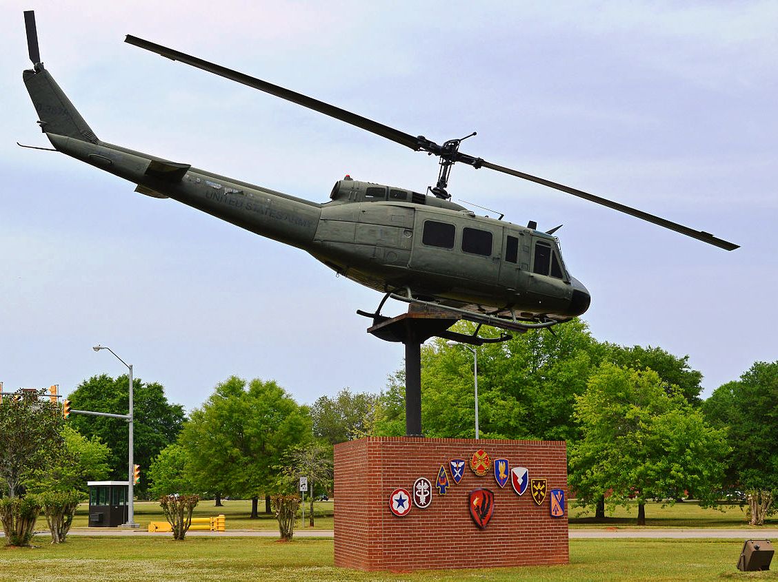 Bell UH-1A Iroquois Helicopter (Serial No. 59-1686), C/N 145. This helicopter is a gate guard at the entrance to the Fort Rucker Base.