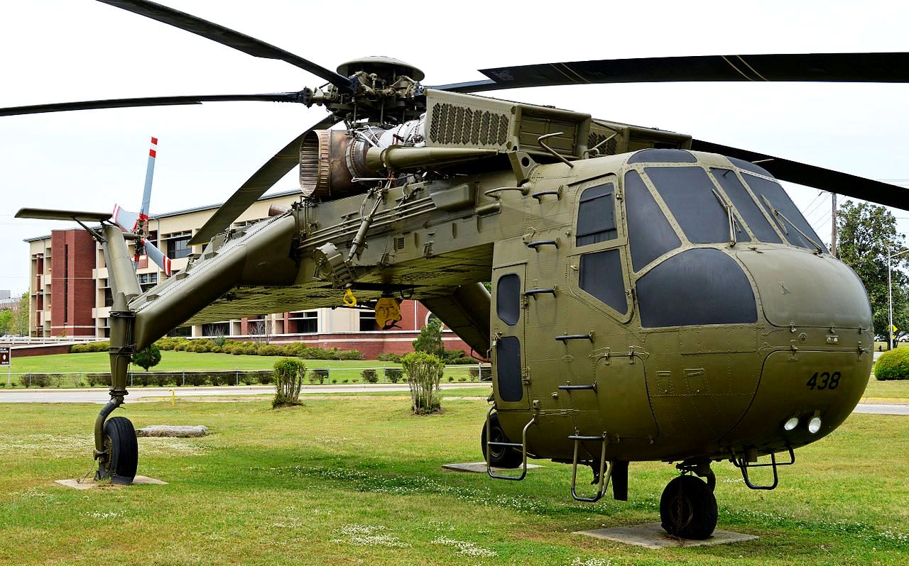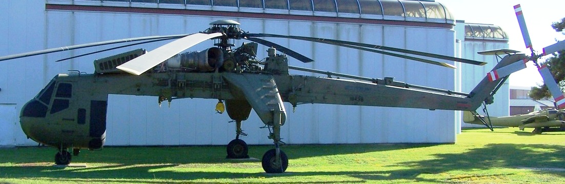 Sikorsky CH-54A Tarhe Helicopter (Serial No. 68-18438). Designed as the civilian S-64 Skycrane, the type first flew in 1962 and 105 were built. The military versions designated CH-54 were named ‘Tarhe’ after the 18th Century chief of the Wyandot Indian tribe, whose nickname was ‘The Crane’. It proved very successful due to the flexibility of using different ‘pods’ for the underslung loads. They were also used for downed aircraft retrieval in Vietnam. The type was finally retired in 1991, after replacement by the CH-47 Chinook.