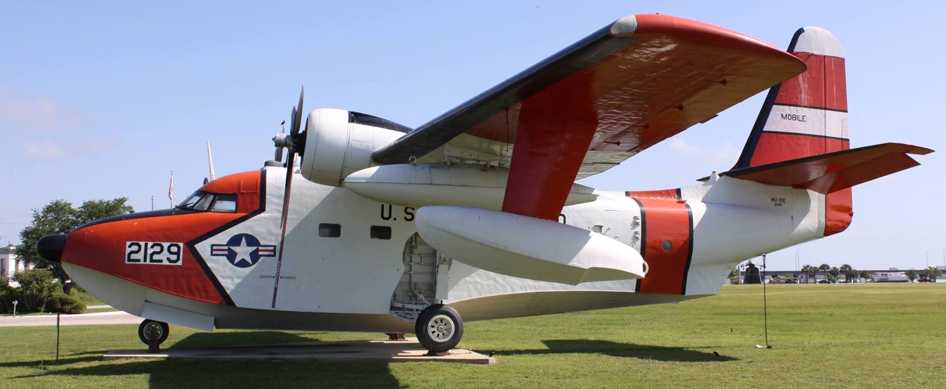 Grumman HU-16E Albatross, USCG (Serial No. 2129), C/N G-356. Ex-USAF SA-16A (Serial No. 52-129), transferred to the USCG as a UF-1G, later converted to the long wing UF-2G and HU-16E. This aircraft is on loan from the NMNA.