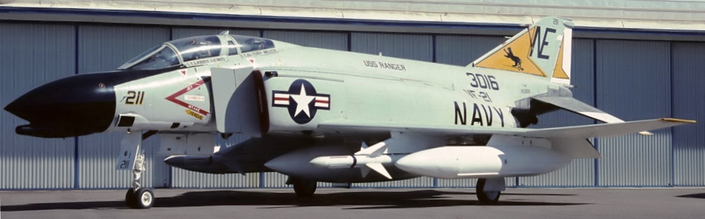McDonnell Douglas F-4N Phantom II (BuNo. 153016), c/n 1485, NE-211, USS Ranger.  The canopy rails are painted with the first and last Freelancer crews lost in the Vietnam War.  First crew lost on the left side, last crew lost on the right.