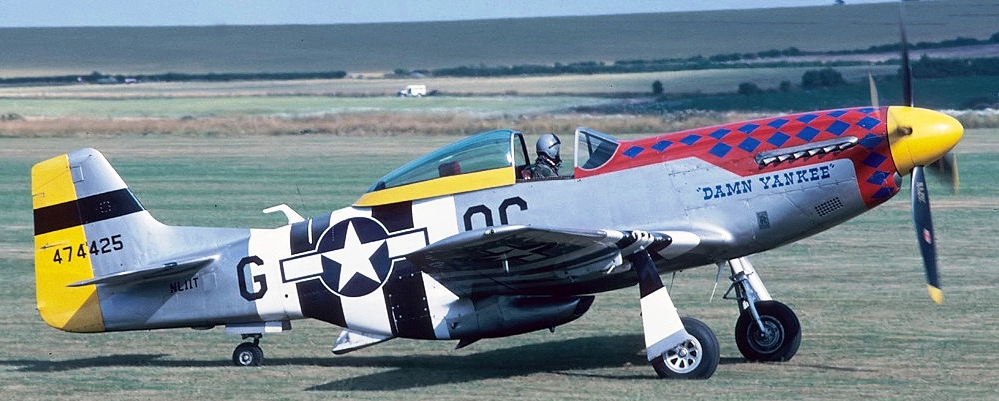 North American P-51D-30NA Mustang (Serial No. 44-11628), C/N 122-40965, “Damn Yankee“, airworthy.  This aircraft is now flown by Tom van de Meullen, Lelystad, Netherlands, Reg. No. PH-PSI.