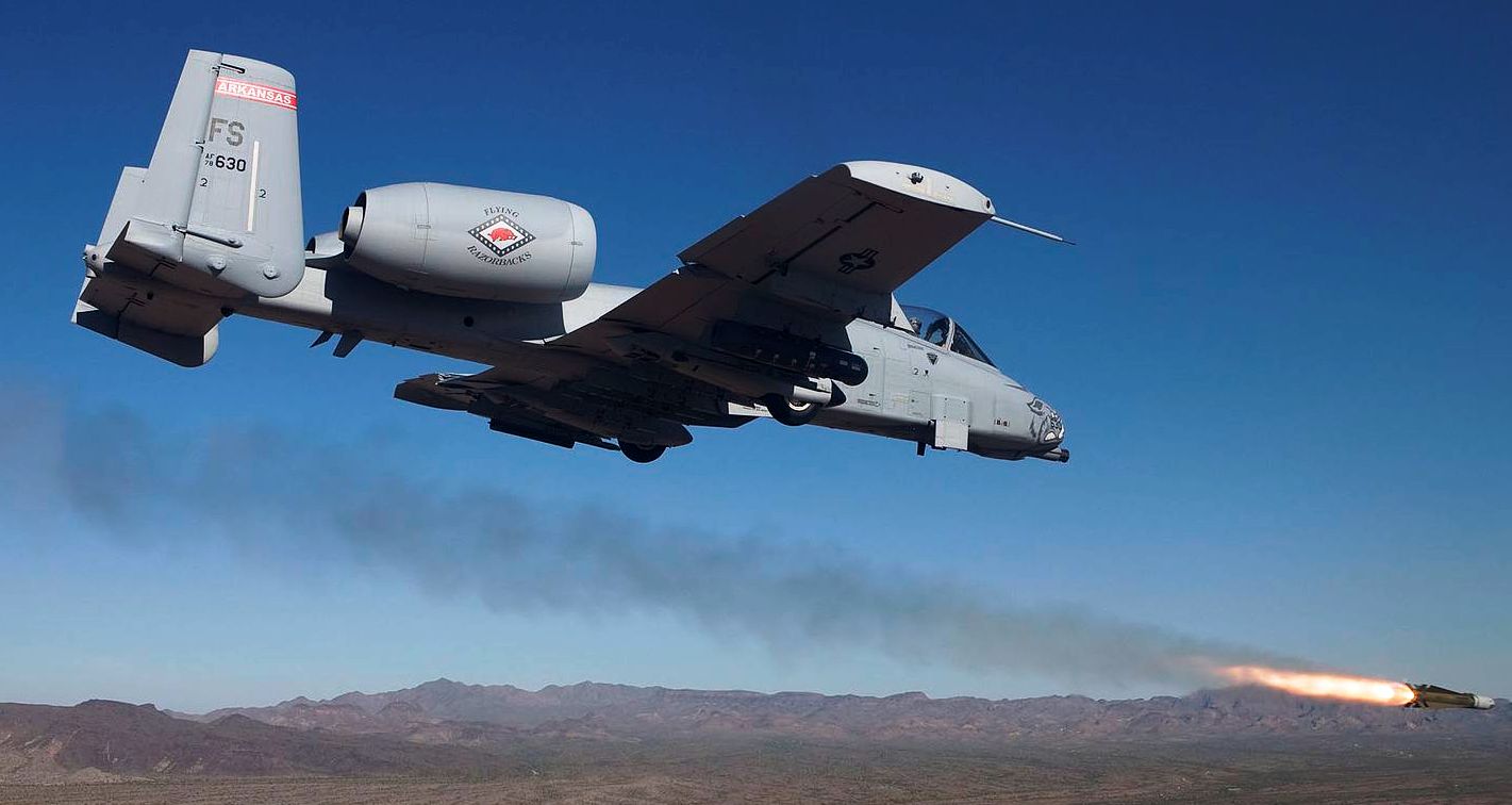 Fairchild A-10C Thunderbolt II with the 188th Fighter Wing, Arkansas Air National Guard, firing a missile in Arizona, 2013.