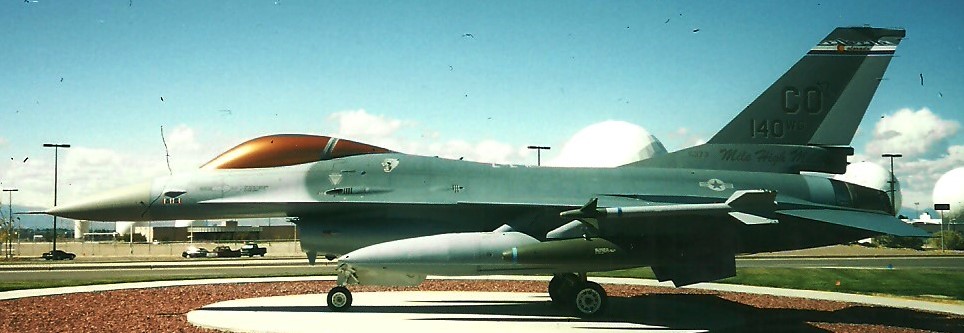 Buckley AFB (formerly ANGB) is located eight miles East of Denver. It is home to the 140th Wing (ANG), which flies F-16A Fighting Falcon fighters; HQ Colorado ANG; 227th Air Traffic Control Flight (ANG); 240th Civil Engineering Flight (ANG); Navy Reserve; Marine Corps Reserve; ARNG; and Air Force Units. The ANGB was activated on the 1st of April 1942 as a gunnery training facility. The ANG assumed control from the US Navy in 1959. The base is named for Lt. John H. Buckley, a National Guardsman who was killed in France on the 27th of September 1918. The base was re-designated an Air Force Base on the 2nd of October 2000. A number of helicopters formerly on display at Buckley have been moved, possibly to Greely.