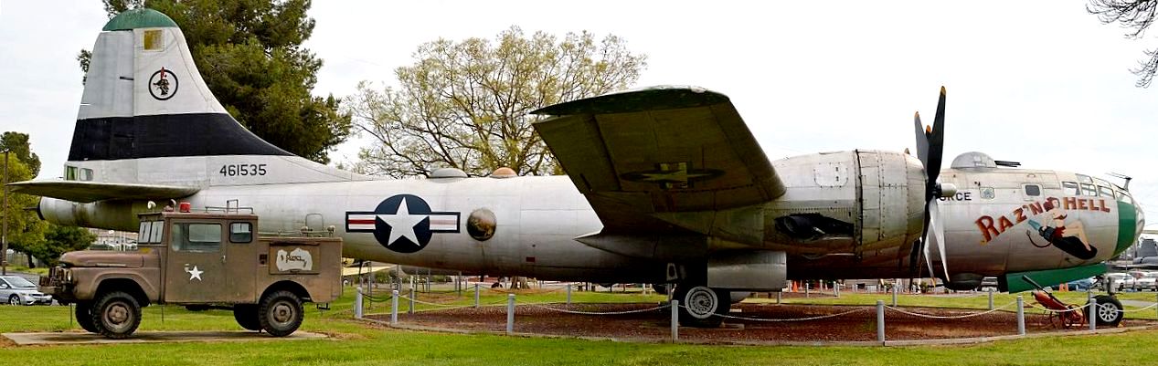 Boeing B-29 Superfortress (Serial No. 44-61535), “Raz’n Hell“, Castle Air Museum, Atwater, California. This is a composite aircraft using the tail of (Serial No. 44-61535), the outer wings of (Serial No. 44-84084), and the fuselage and inner wings of (Serial No. 44-70064).