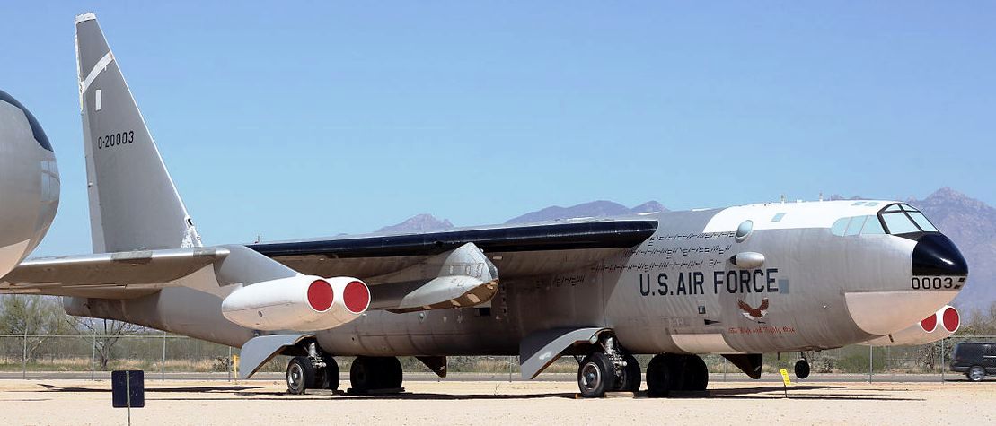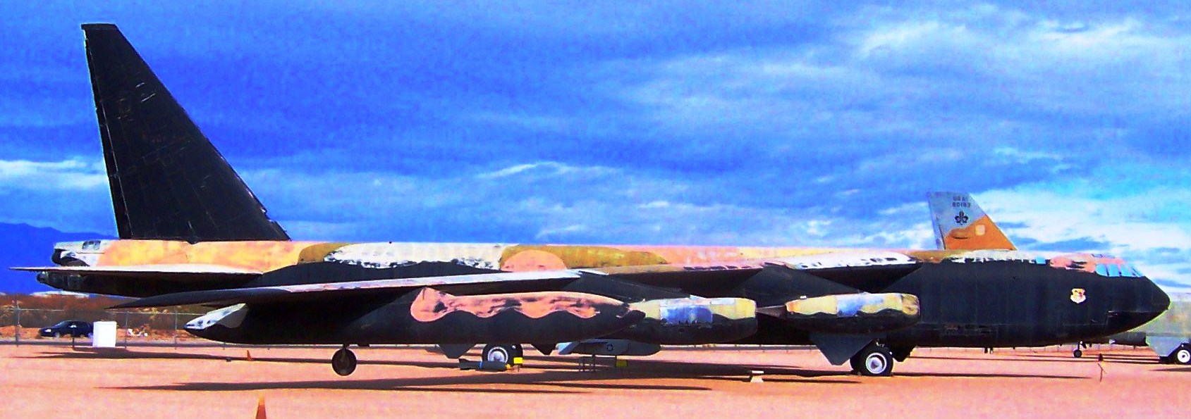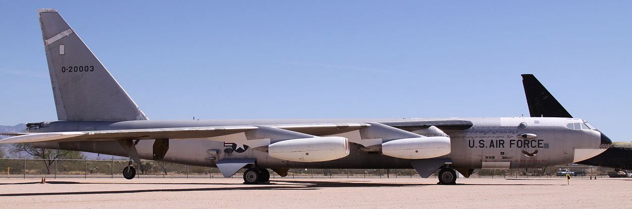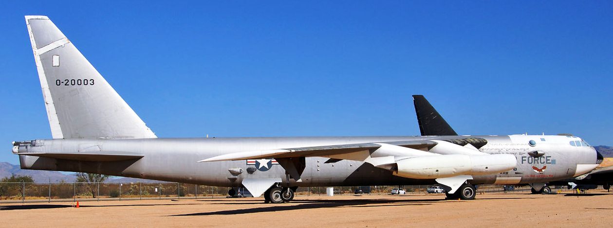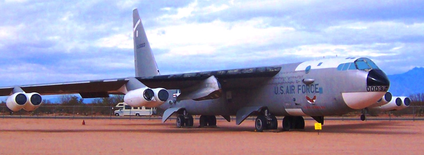 52-0003 – Pima Air & Space Museum adjacent to Davis-Monthan Air Force Basein Tucson, Arizona. It is a converted B-52A that was used by the Air Force Flight Test Center at Edwards AFB, California as the X-15 Launch Aircraft; now on display and marked as 0003 The High and the Mighty One.
