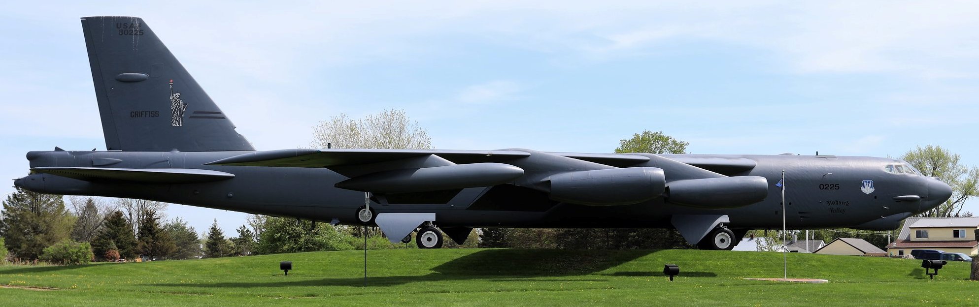 58-0225 – Mohawk Valley B-52 Memorial in Rome, New York. It is marked as”0225 Mohawk Valley” and was operated by the 416th Bomb Wing at theformer Griffiss Air Force Base in Rome, New York. The aircraft was damaged byan EF2 tornado on 16 July 2024. C/N 464293, “Mohawk Valley”.