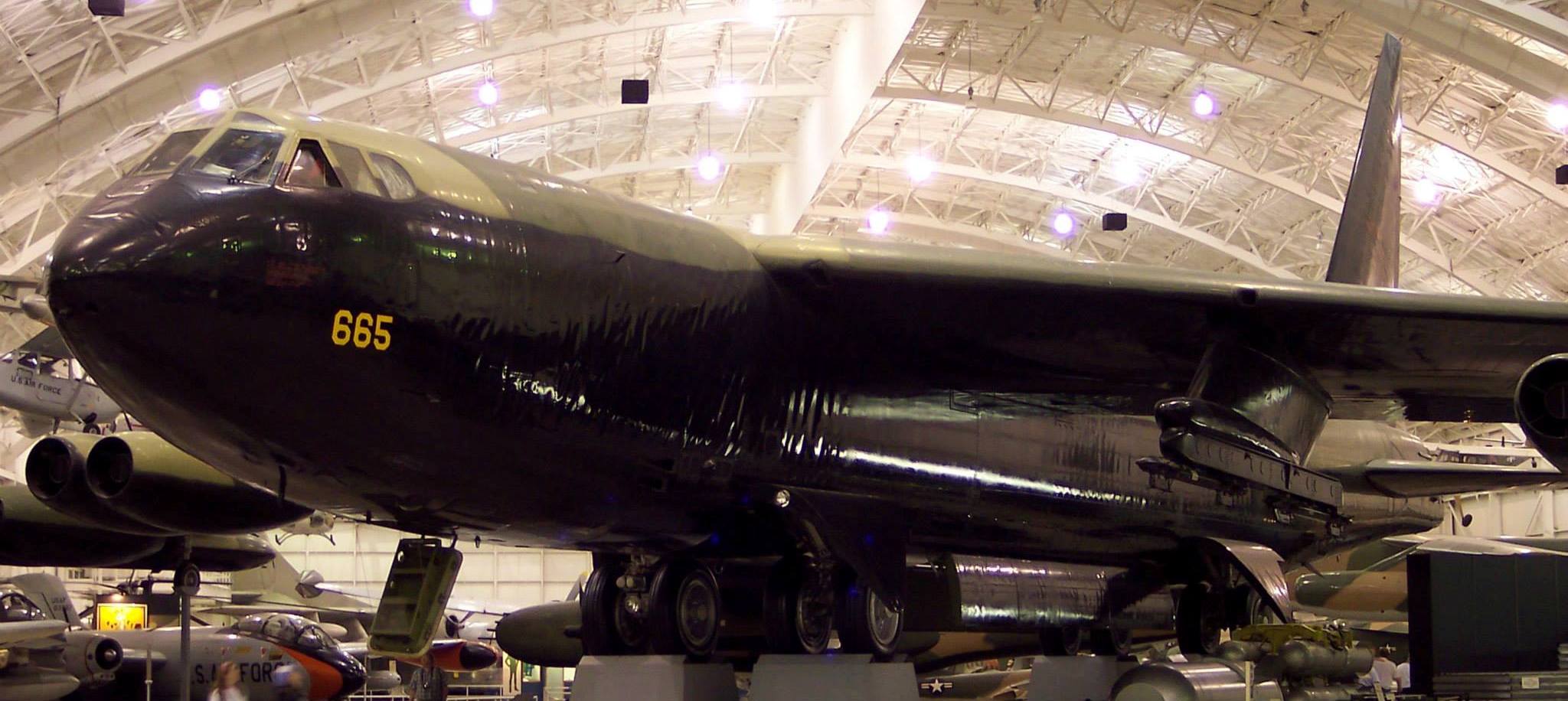 56-0665 – National Museum of the United States Air Force, Wright-Patterson AFB, Dayton, Ohio. C/N 464036. n June 1965, B-52s entered combat in Southeast Asia.  By August 1973, they had flown 126,615 combat sorties with seventeen B-52s lost to enemy action.  The aircraft on display saw extensive service in Southeast Asia and was severely damaged by an enemy surface-to-air missile on 9 April 1972.  In December 1972, after being repaired, it flew four additional missions over North Vietnam.  Transferred from the 97th Bomb Wing at Blytheville Air Force Base, Arkansas, this aircraft was flown to the Museum in November 1978.