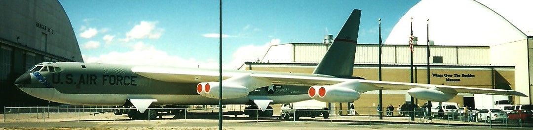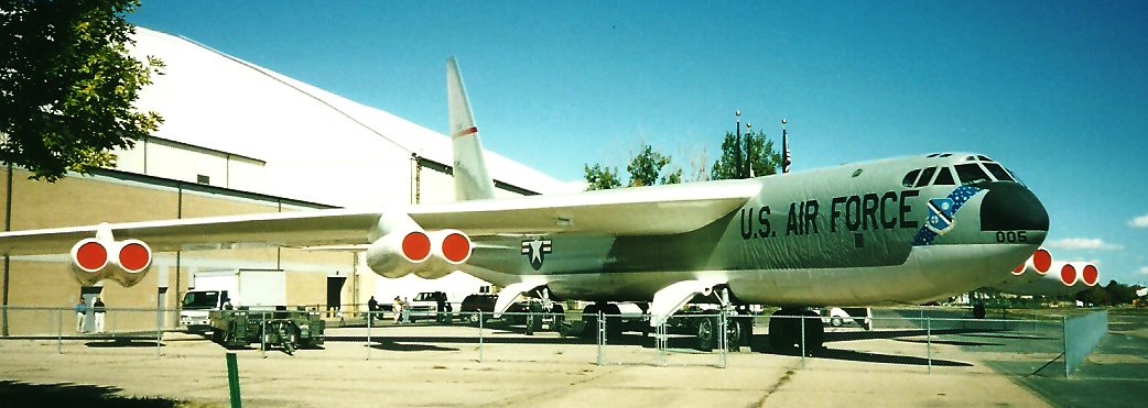52-8711 – Strategic Air Command & Aerospace Museum in Ashland, Nebraska. C/N 16839. It was originally a B-52B and was the first operational B-52 delivered to the Air Force, entering service with the 93d Bombardment Wing on 29 June 1955. It was dropped from inventory on 29 September 1965 and transferred to the Strategic Air & Space Museum.