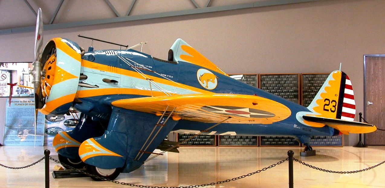 Boeing P-26A Peashooter (Serial No. 33-00123), Reg. No. NX3378G, airworthy. This is the only original flyable P-26 in the world. It was delivered to the USAAC in 1934 and served with the 27th Pursuit Group at Selfridge Field, Michigan, and the 20th Pursuit Group at Barksdale Field, Louisiana, before being sent to the Panama Canal Zone. It served with the Guatemalan Air Force from May 1943 to 1957. First flown back in the USA in 1962.