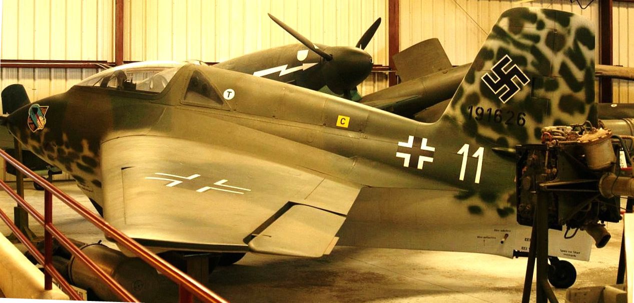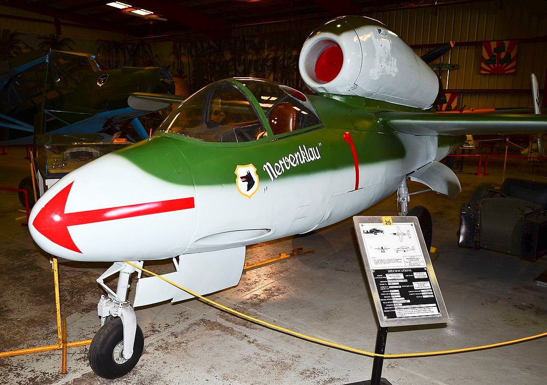 Heinkel He 162A-2 Volksjäger, (Wk. Nr. 120077), on static display.