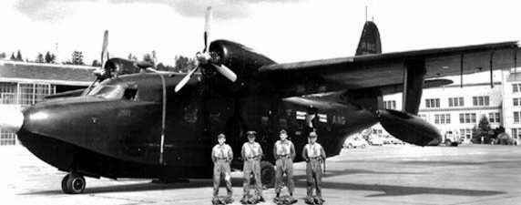 Grumman HU-16 Albatross amphibian with its crew. The aircraft was assigned to the 129th Air Commando Group, California Air National Guard at Hayward Airport from 1963 to 1968.
