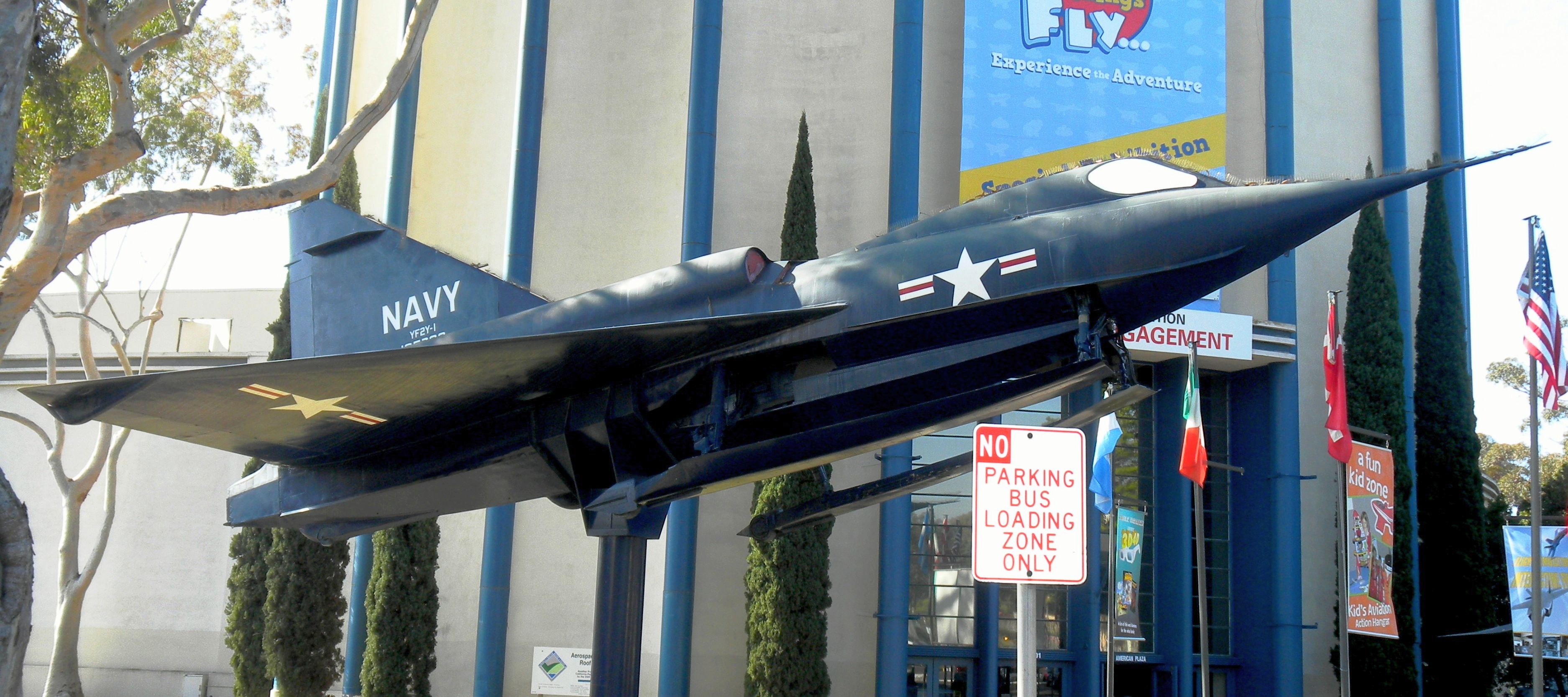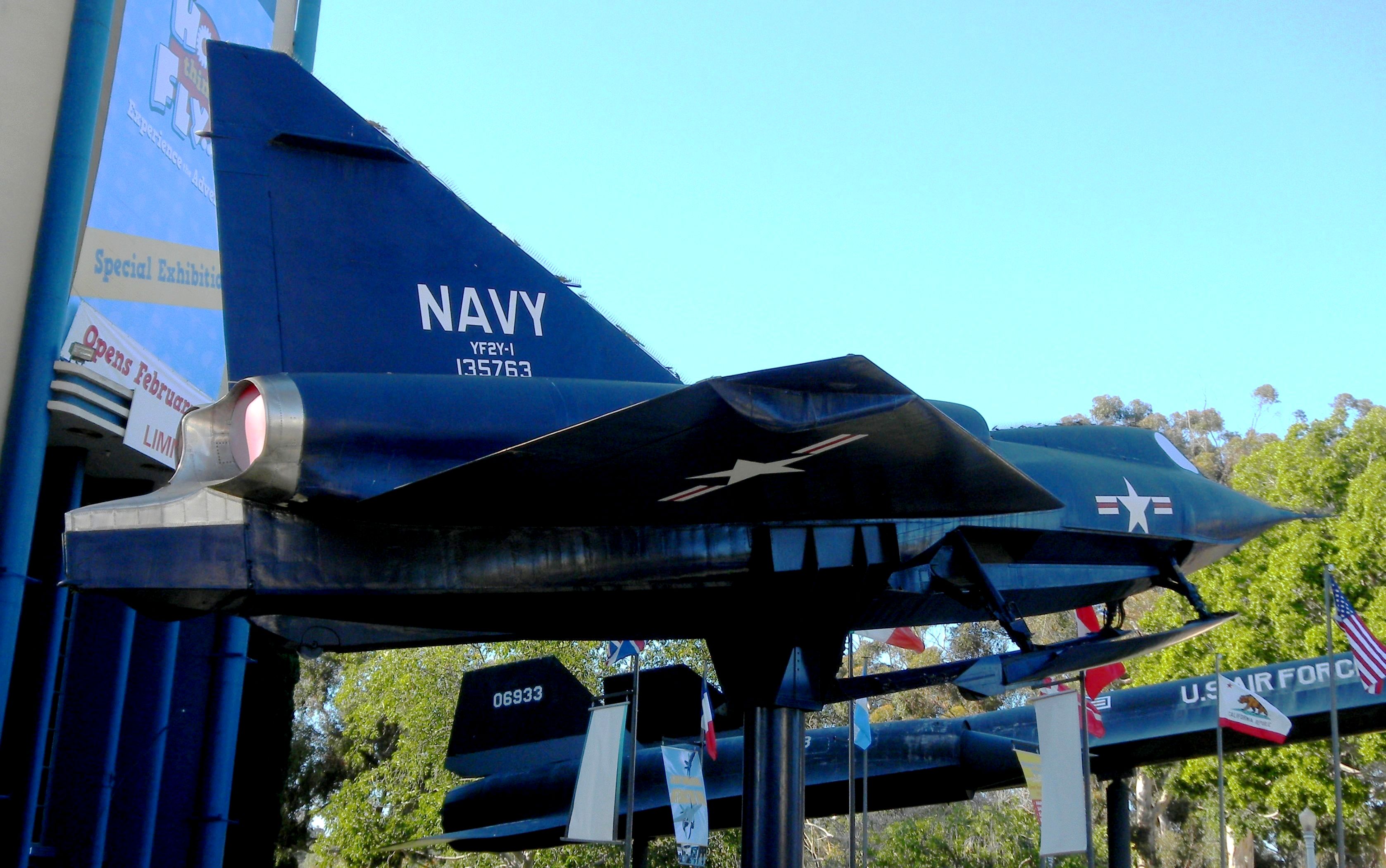 Convair YF2Y-1 Sea Dart (BuNo. 135763), mounted on a pylon in front of the Museum.