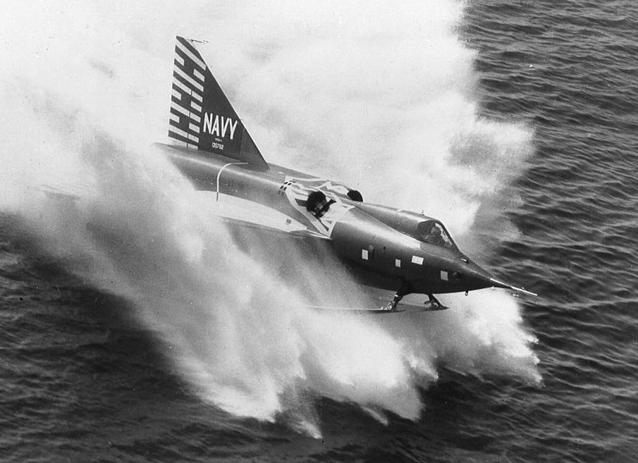 Convair built XF2Y-1 Sea Dart (BuNo. 135762) during a landing in 1954.