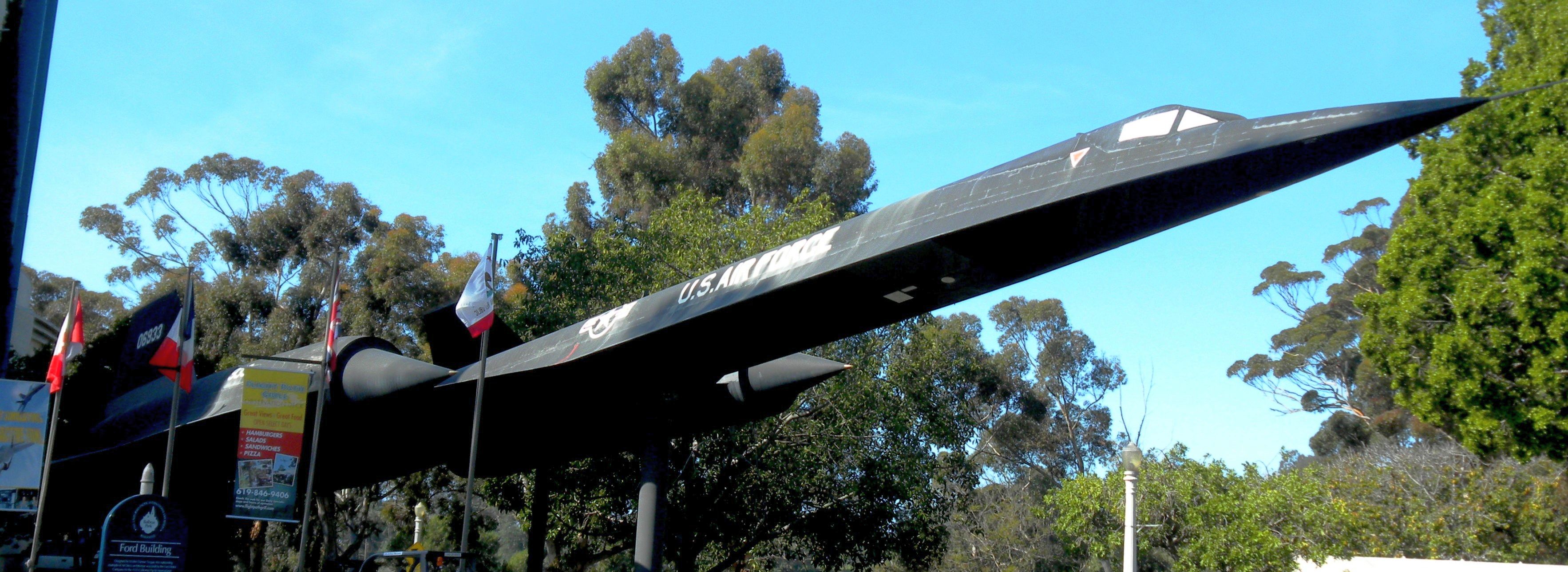 Lockheed A-12 (Serial No. 60-6933), mounted on a pylon in front of the museum.