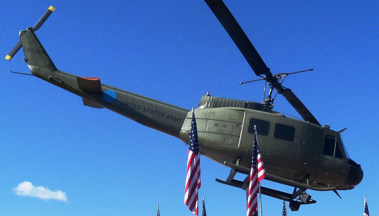 Bell UH-1H Iroquois helicpter (Serial No. 68-16307), mounted on a pylon in the Western Slope Vietnam War Memorial Park.