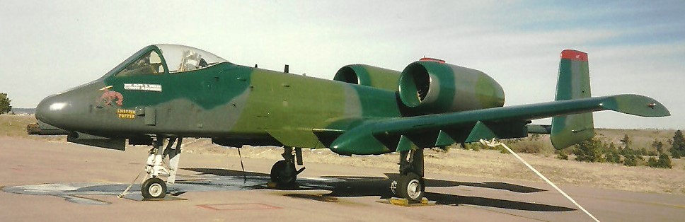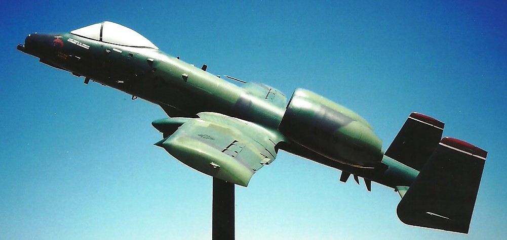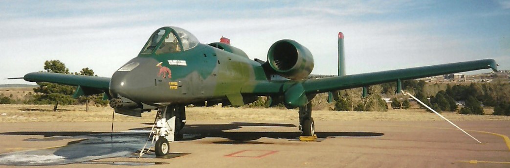 Fairchild A-10 Thunderbolt (Serial No. 77-0205). During Operation Desert Storm, Capt. Swain was the 1st pilot in history to have an air-to-air shoot down of an enemy helicopter. This aircraft was mounted on a pylon at the USAF Academy in May 2013. Thunderbird Lookout.