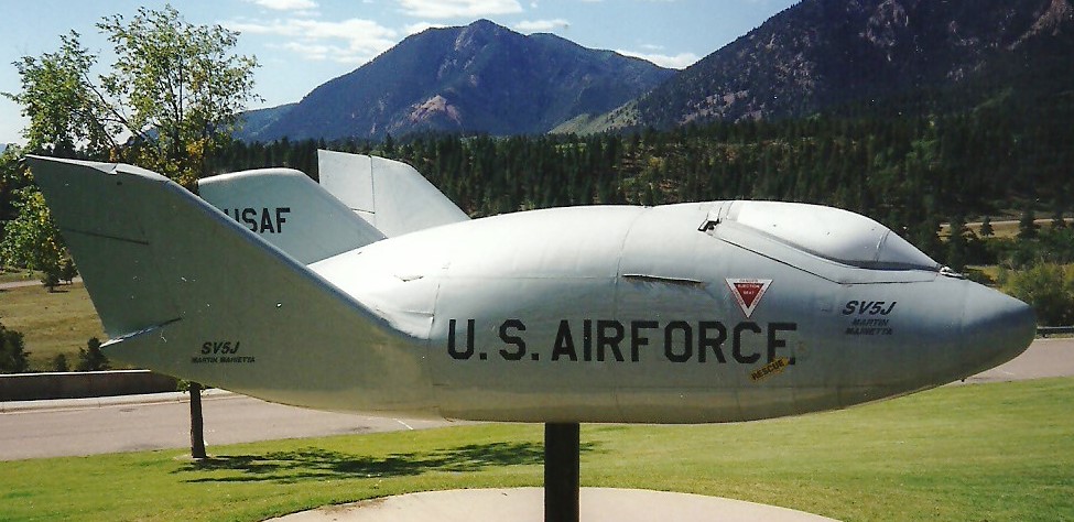 After learning about a remark by Chuck Yeager that he would like to have some jet-powered lifting bodies for training purposes, Martin designed and built, on their own initiative, two examples of the SV-5J. The SV-5J was a jet-powered version of the rocket-powered X-24A. The SV-5J had identical dimensions to the X-24A, but was powered by a single Pratt & Whitney J60-PW-1 jet engine of 1360 kgf, in place of the X-24A’s Reaction Motors XLR-11-RM-13 rocket engine. Martin also manufactured a full-scale, unflyable, mock-up of the SV-5J. (Confusion over number built may be due to the mock-up being included in the production list.). Martin were unable to convince Milt Thompson to fly the SV-5J, even after offering a $20,000 bonus. Both examples remained unflown. As the original X-24A was converted to X-24B, one of the SV-5Js eventually was converted to represent the X-24A, for display at the National Museum of the United States Air Force, Wright-Patterson AFB, Ohio, beside the original X-24B.