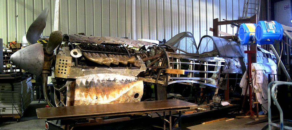 Curtiss P-40E Kittyhawk IA (Serial No. 40-401), being restored to airworthiness by private owner in Sonoma, California.