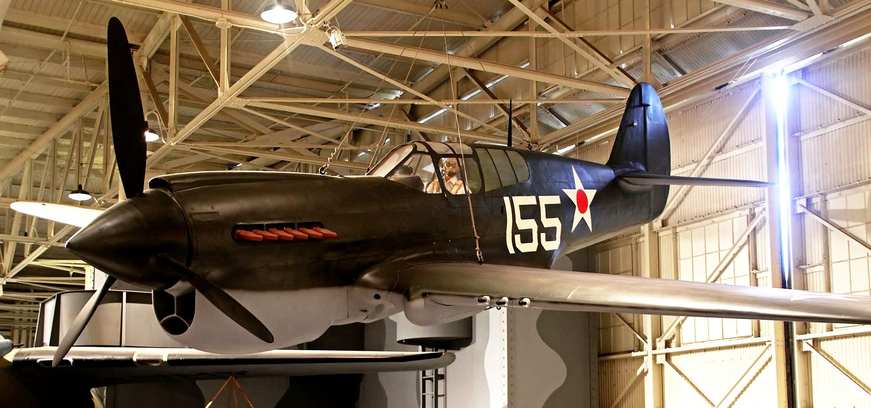 Curtiss P-40 Warhawk (Serial No. 191), replica,  suspended from wires in the USS Kidd Veterans Museum in Baton Rouge, Louisiana.