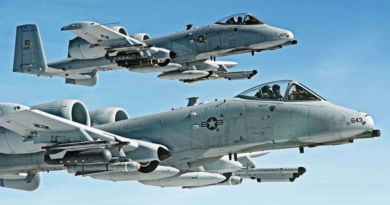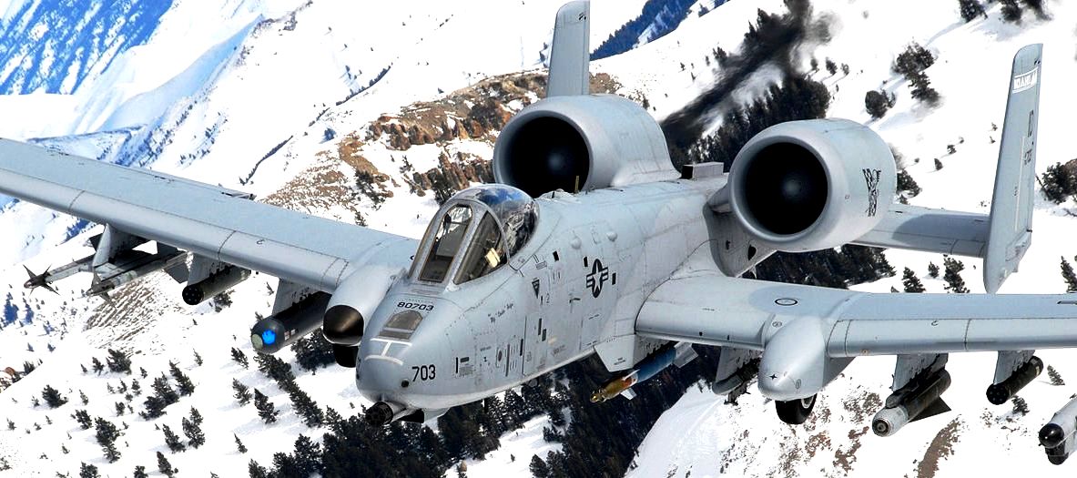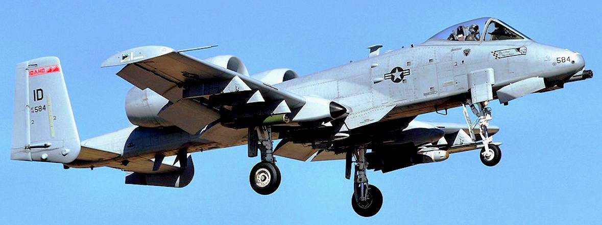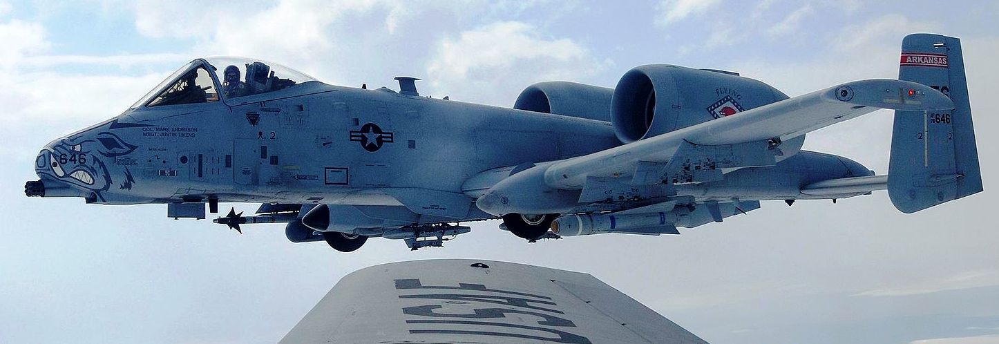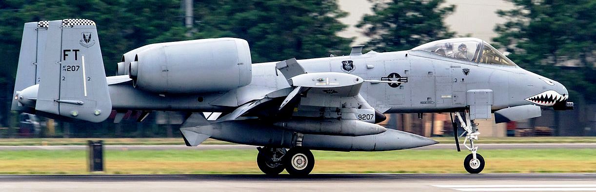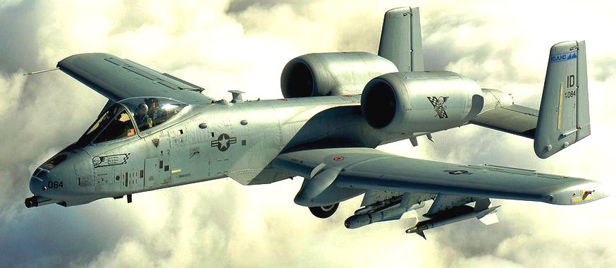 Primary Function: A-10 close air support, airborne forward air control, combat search and rescueContractor: Fairchild Republic Co.Power Plant: Two General Electric TF34-GE-100 turbofansThrust: 9,065 pounds each engineLength: 53 feet, 4 inches (16.16 meters)Height: 14 feet, 8 inches (4.42 meters)Wingspan: 57 feet, 6 inches (17.42 meters)Speed: 420 miles per hour (Mach 0.56)Ceiling: 45,000 feet (13,636 meters)Maximum Takeoff Weight: 51,000 pounds (22,950 kilograms)Range: 800 miles (695 nautical miles)Armament: One 30mm GAU-8/A seven-barrel Gatling gun; up to 16,000 pounds (7,200 kilograms) of mixed ordnance on eight under-wing and three under-fuselage pylon stations, including 500 pound (225 kilograms) Mk-82 and 2,000 pounds (900 kilograms) Mk-84 series low/high drag bombs, incendiary cluster bombs, combined effects munitions, mine dispensing munitions, AGM-65 Maverick missiles, laser-/GPS-guided bombs, unguided and laser-guided 2.75-inch (6.99 centimeters) rockets; infrared countermeasure flares; electronic countermeasure chaff; jammer pods; illumination flares and AIM-9 Sidewinder missiles.Crew: OneDate Deployed: March 1976Unit Cost: $9.8 million (fiscal 98 constant dollars)Inventory: Total Force – approximately 281. (USAF)