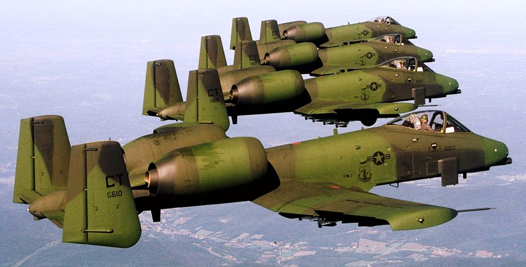 Fairchild Republic A-10C Thunderbolts,175th Wing, Maryland Air National Guard stationed at Warfield Air National Guard base in Baltimore, Maryland flying in formation during a training exercise, 2010.