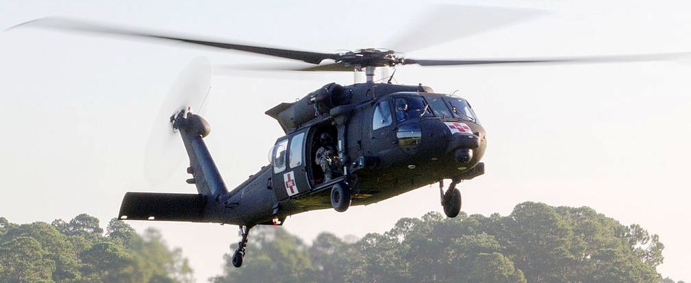 Sikorsky UH-60M Black Hawk helicopter flown byh the Florida Army National Guard maneuvering near Army Reserve Military Police Soldiers during a training exercise held at Camp Blanding, Florida, on 8 Aug 2014.