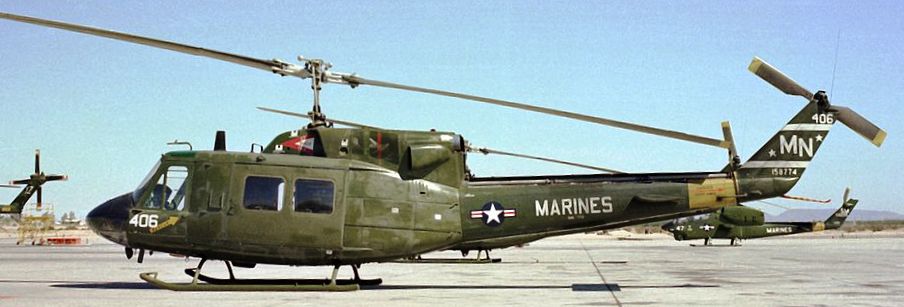 Bell UH-1N Iroquois helicopter (BuNo. 158774), USMC, from Marine light helicopter squadron HML-770 sitting on the flight line at Naval Air Station Whiting Field, Florida in 1982.