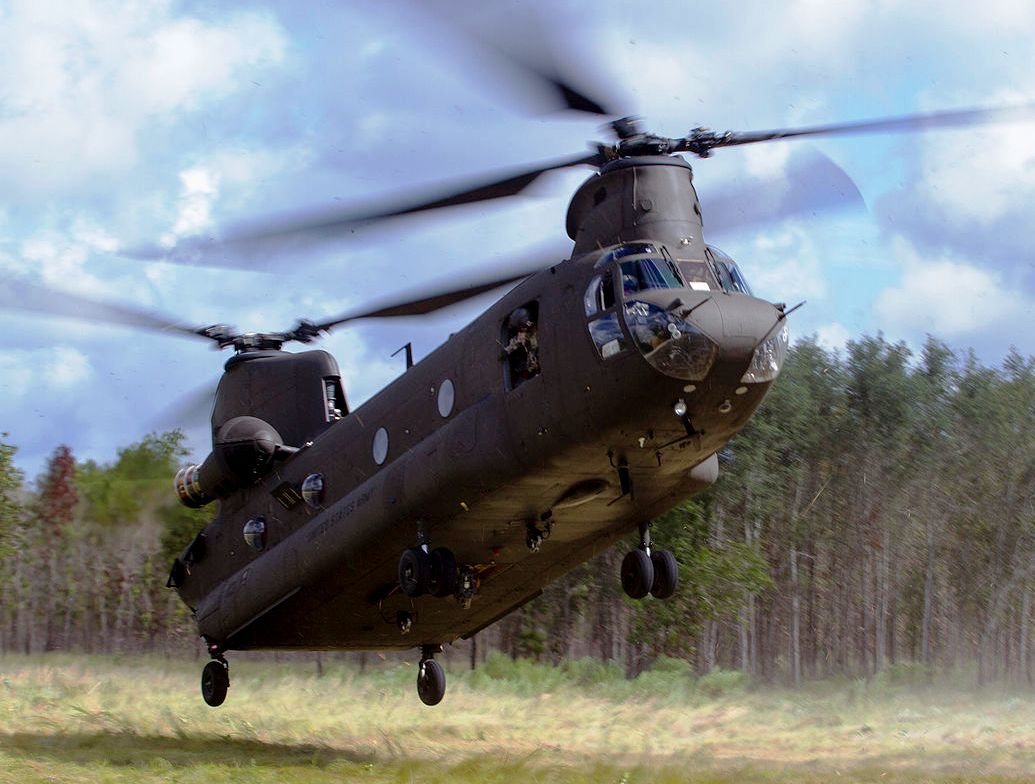 Boeing Vertol CH-47 Chinook helicopter assigned to the 1st Battalion, 111th Aviation Regiment, Florida Army National Guard from nearby Jacksonville, Florida, preparing to land on a remote landing zone at Camp Blanding, Florida, 8 Aug 2014, in support of the Army Reserve’s 724th Military Police Battalion, based in Fort Lauderdale, Florda.