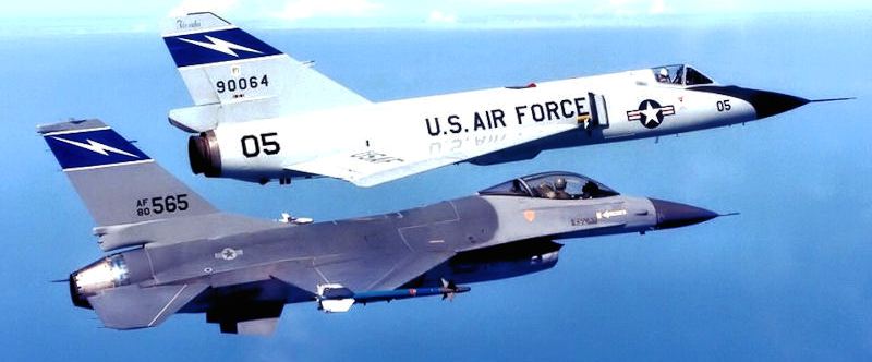 Convair F-106 Delta Dart and General Dynamics F-16 Fighting Falcon with the 159th Fighter Interceptor Squadron, 125th Fighter Interceptor Wing, Florida Air National Guard, 1987.