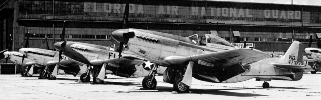 North American F-51D Mustang fighters of the 159th Fighter Squadron, Florida Air National Guard, at Thomas Cole Imeson Airport, Jacksonville, Florida, ca 1947.