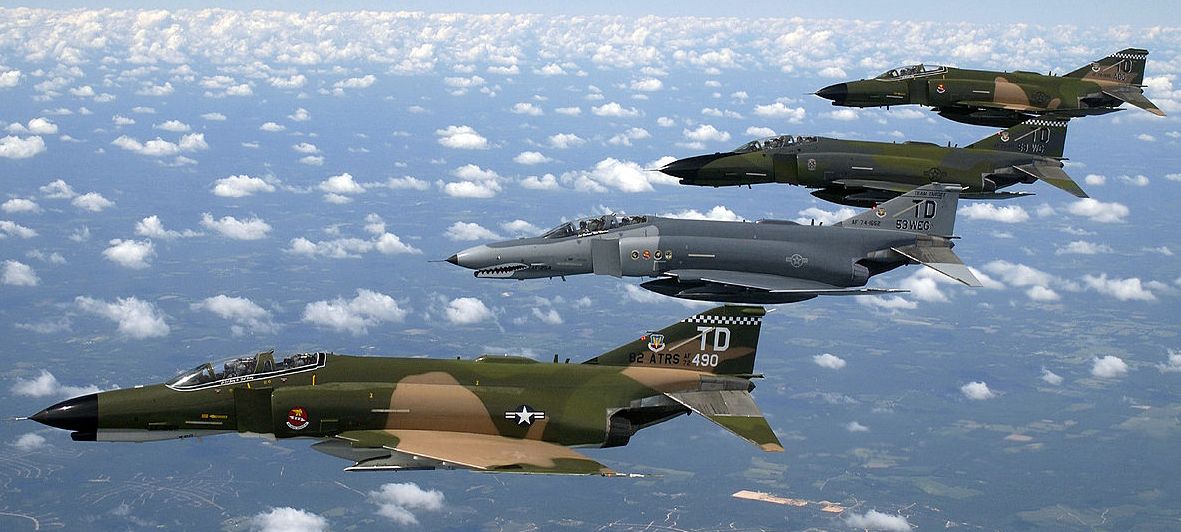 McDonnell F-4 Phantom II formation during a heritage flight demonstration over Florida in 1997 to commemorate the 50th Anniversary of the U.S. Air Force.