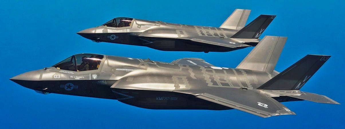 Lockheed Martin F-35 Lightning II fighters assigned to Naval Air Station Pensacola, over the northwest coast of Florida, 15 May 2013.