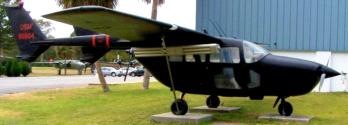 Cessna O-2A Skymaster (Serial No. 67-21331), painted as (Serial No. 68-6864). 68-6864 is painted with the black paint scheme used to fly night missions over sites on the Ho Chi Minh Trail in Viet Nam. It was assigned to various units during the war in Southeast Asia from Jan 1968 to Mar 1972.