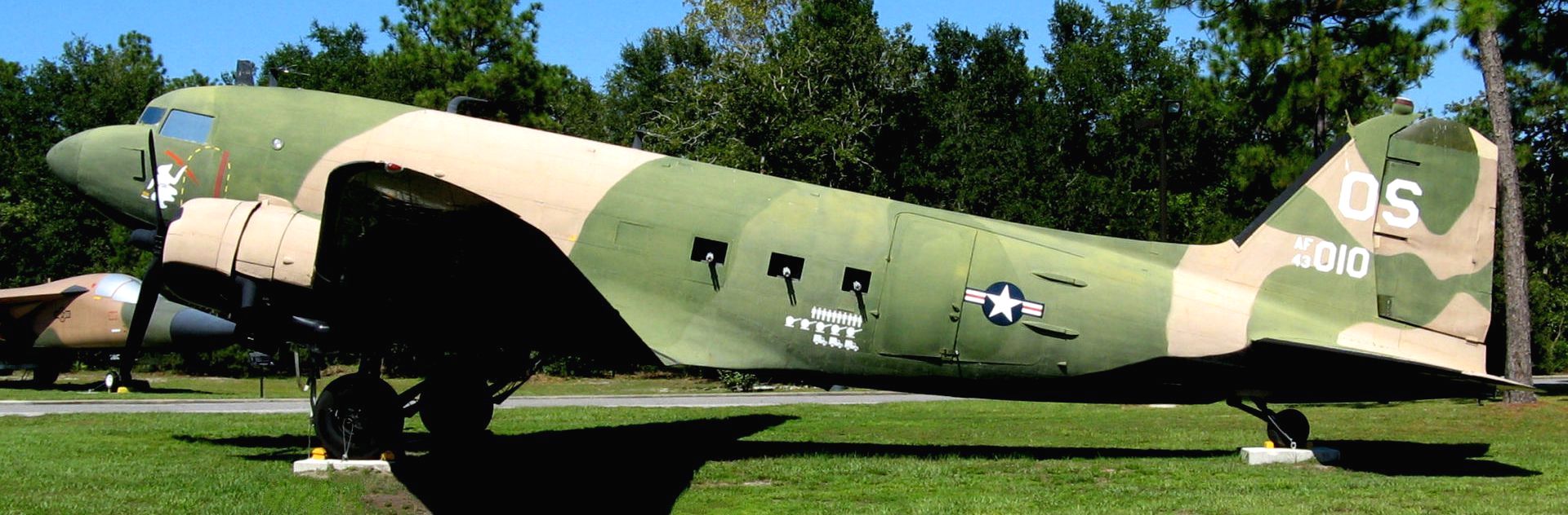 Douglas AC-47D Skytrain/Spooky (Serial No. 44-76486), c/n 32818, (BuNo. 39103), painted as (Serial No. 43-49010), OS. 44-76486 is painted as AC-47D (Serial No. 43-49010) which was one of the first twenty C-47Ds converted to its AC-47D configuration by Air International at Miami, FL. 43-49010 was assigned to the 4th Special Operations Squadron, 14th Special Operations Wing, Udorn RTAFB, Thailand during the Vietnam War from 1969 – 1970.