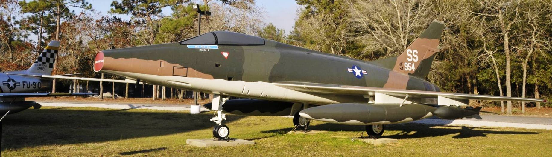 North American F-86F Sabre (Serial No. 52-5513), at one time painted as (Serial No. 51-2831), c /n 193-242, FU-831, now painted as (Serial No. 51-2910), “Beautious Butch II” with 16 red star kill markings. 52-5513, was donated to the AF Armament Museum by Gen Choo Young Bock from the Republic of Korea Air Force. This jet depicts the F-86F Sabre (Serial No. 51-2910) flown by Captain Joseph McConnell who achieved triple-ace status (16) MIG-15 kills while stationed with the 39th Fighter Interceptor Squadron in Korea during the Korean Conflict. The 39th Fighter Interceptor Squadron was later designated as the 39th Flight Test Squadron on Eglin AFB that is now part of the 40th Test Squadron. This display is a tribute to the F-86 Sabre and to Captain McConnell the leading ace of the Korean War and to all of the men and women that served during the Korean conflict.
