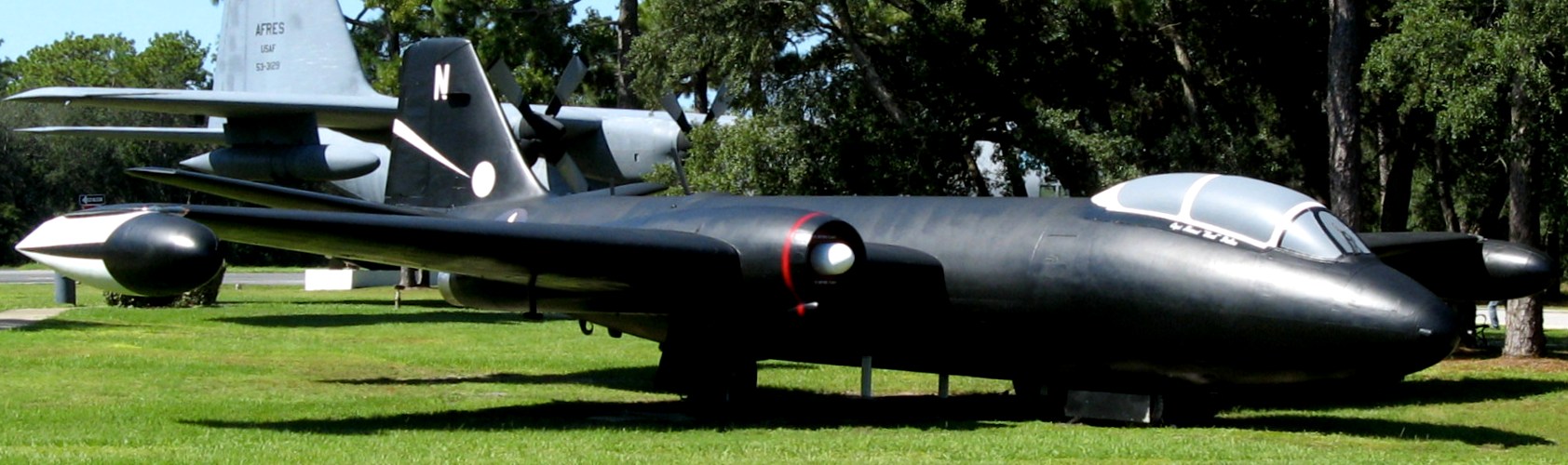 Boeing RB-47H Stratojet (Serial No. 53-4296). 53-4296 differed somewhat in equipment on board and carried six crewmembers. This particular aircraft served with the 55th Strategic Reconnaissance Wing at Forbes AFB, KS. And was the last operational RB-47 in the USAF; when flown to Davis Monthan AFB, Arizona on 29 December 1967 for storage. It is painted as a B-47E bomber used during the 1950-1960s. Item of interest – During the early days of Eglin Gulf Test Range, several B-47s were converted to target drones for the Bomarc Missile Program.