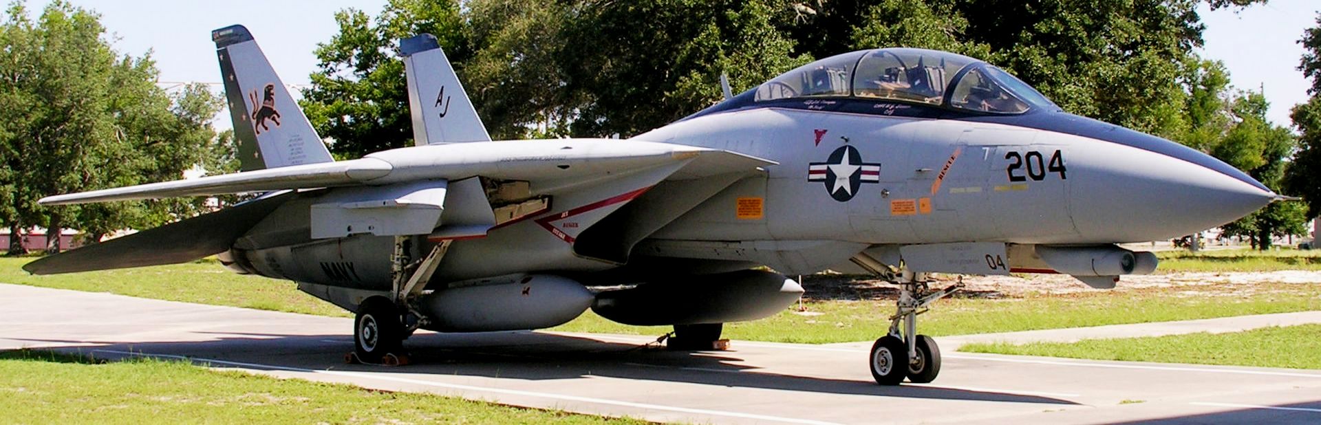 157984 – National Naval Aviation Museum, Naval Air Station Pensacola, Florida. C/N 5, AJ-201. Fifth F-14 manufactured and one of the prototypes used in flight testing. Mounted on pedestal at entrance to museum.
