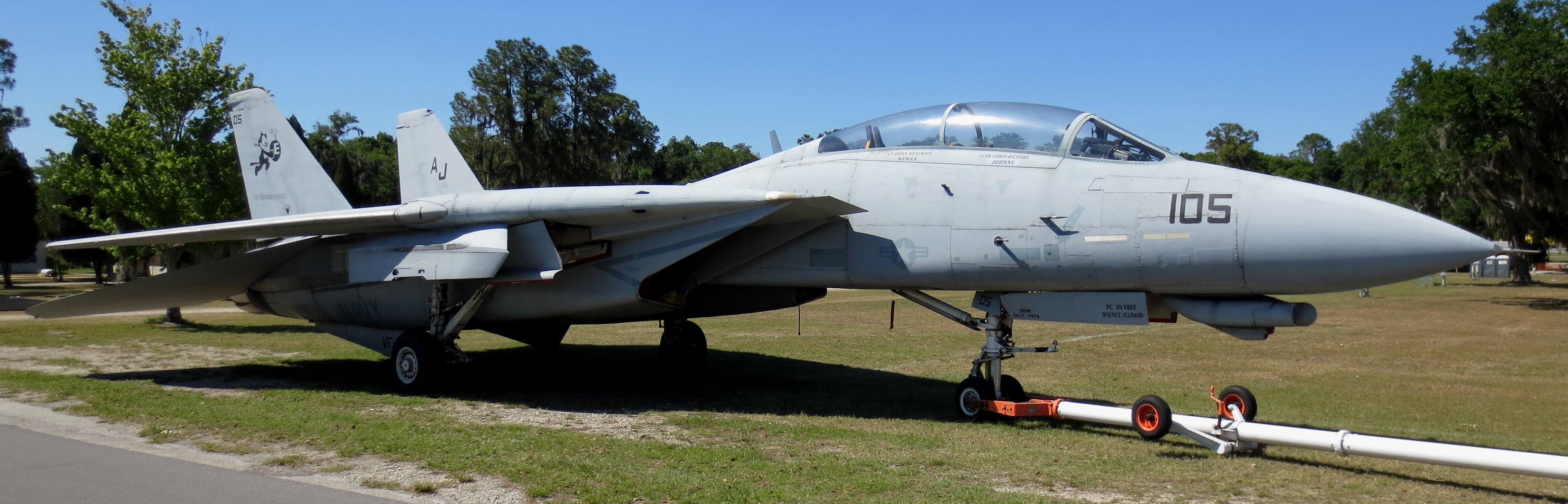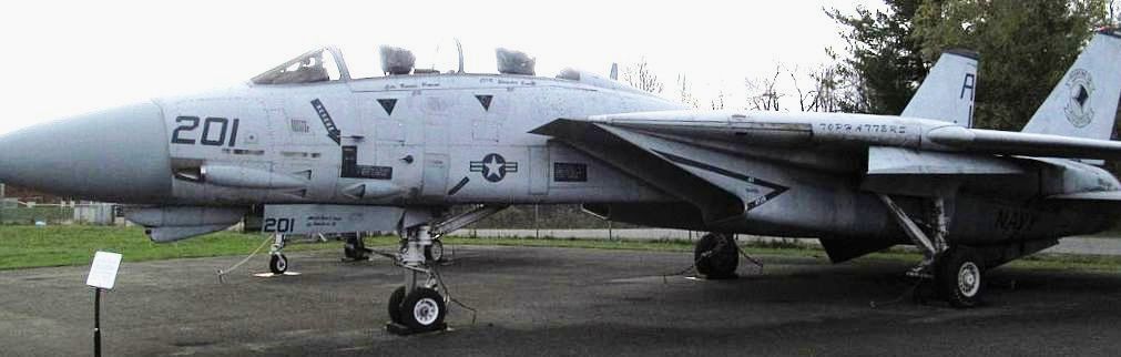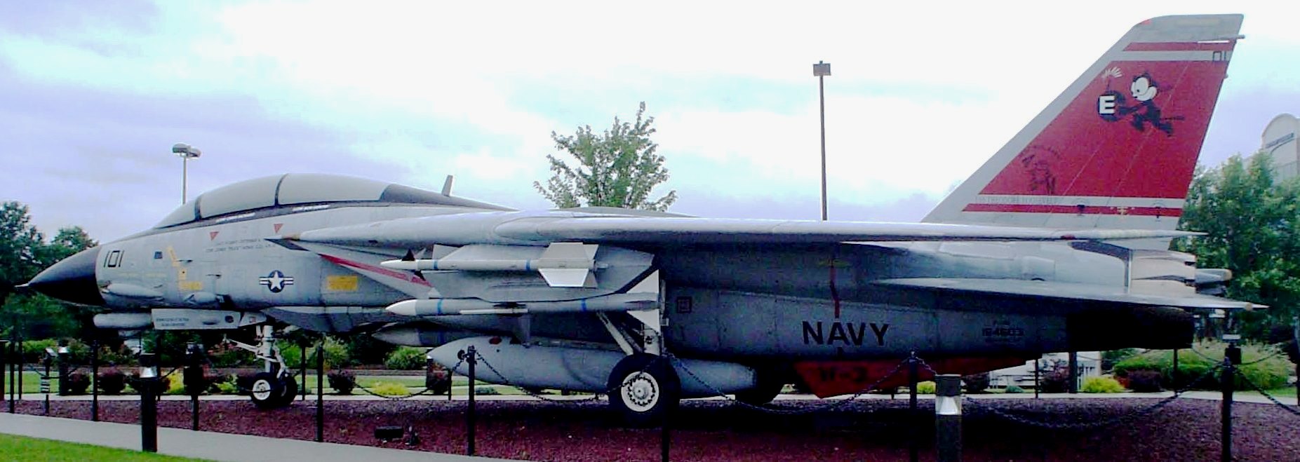164603 – Cradle of Aviation Museum, Garden City, New York. Felix 101 from VF-31is the last Tomcat to fly in U.S. Navy service. Final flight was from NASOceana, Virginia to the American Airpower Museum at Republic Airport LongIsland, New York on 4 October 2006 where it was displayed for a year and a halfbefore being moved to Grumman Plant 25, and then to the Cradle of AviationMuseum after the Grumman facility was sold. AJ 101, C/N 631/D-36.