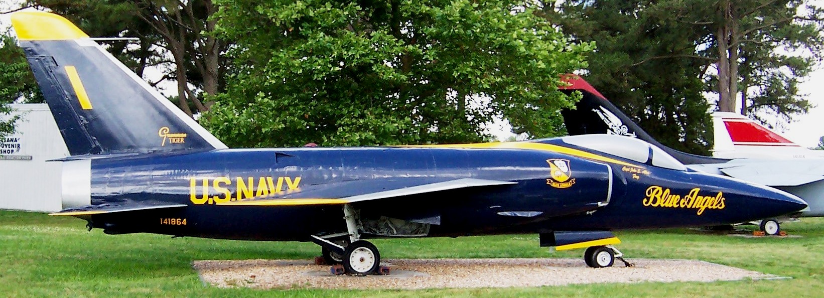 The Tiger entered service with the U.S. Navy during 1956, and was flown from the carriers Intrepid, Lexington, Hancock, Bon Homme Richard, Shangri-La, Forrestal, Saratoga and Ranger. Frontline use of the Tiger was relatively brief, largely due to its performance being inferior to the competing Vought F-8 Crusader, such as its limited endurance, while its Wright J65 turbojet engine had also proved to be somewhat unreliable. Through to the late 1960s, the aircraft used flown by the Naval Air Training Command in South Texas at NAS Chase Field and NAS Kingsville, to give students experience of supersonic flight. Between 1957 and 1969, the Tiger was used by the Blue Angels flight team, being eventually replaced by the McDonnell Douglas F-4 Phantom II. The last examples were withdrawn from U.S. Navy service during 1969, although a handful of aircraft remained operational and were conducting test flights as late as 1975. (Wikipedia)