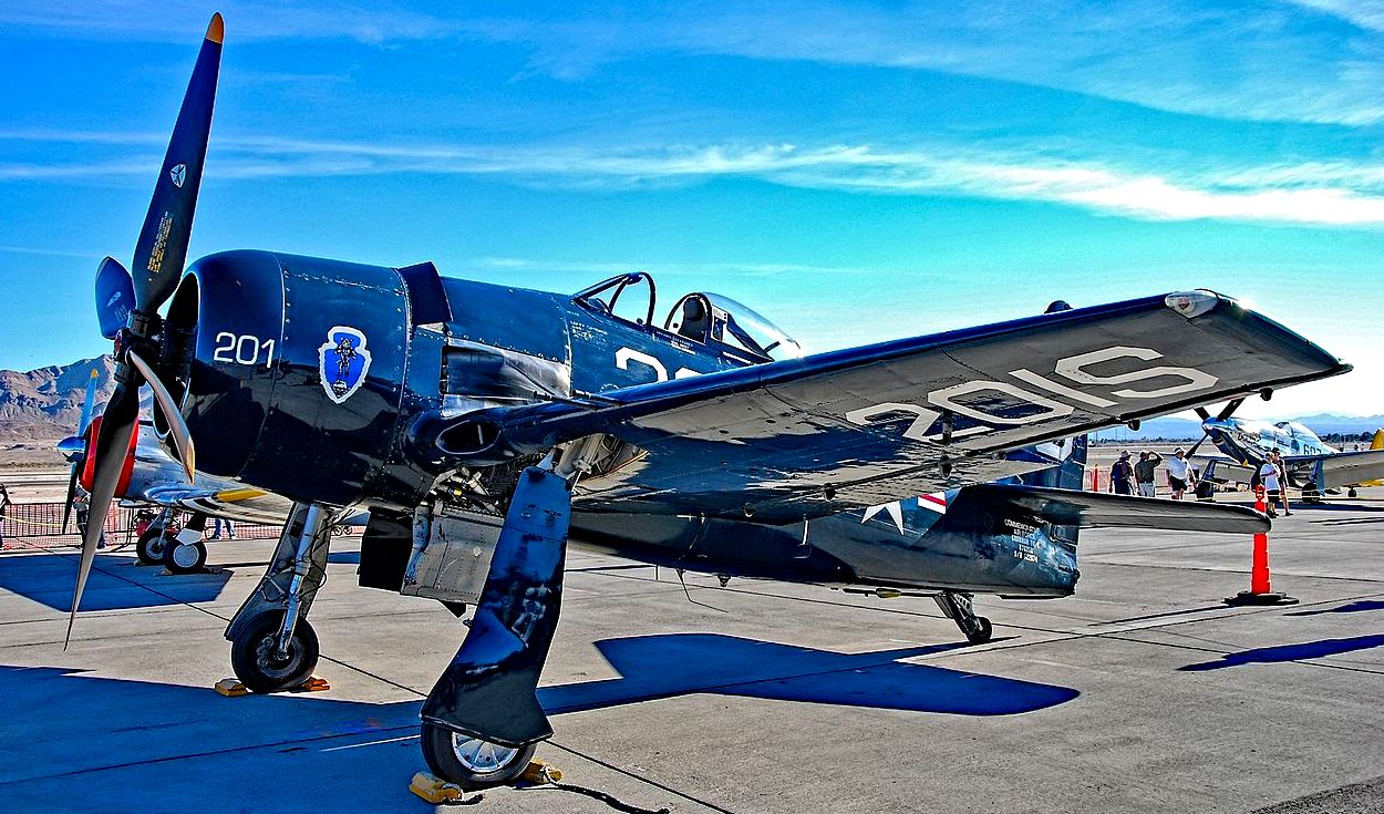 The Grumman F8F Bearcat is an American single-engined, carrier-based fighter aircraft introduced in late World War II. It served during the mid-20th century in the United States Navy, the United States Marine Corps, and the air forces of other nations. It was Grumman Aircraft’s last piston-engined fighter aircraft. Modified versions of the Bearcat have broken speed records for piston-engined aircraft. Today, the Bearcat is popular among warbird owners and air racers. (Wikipedia)