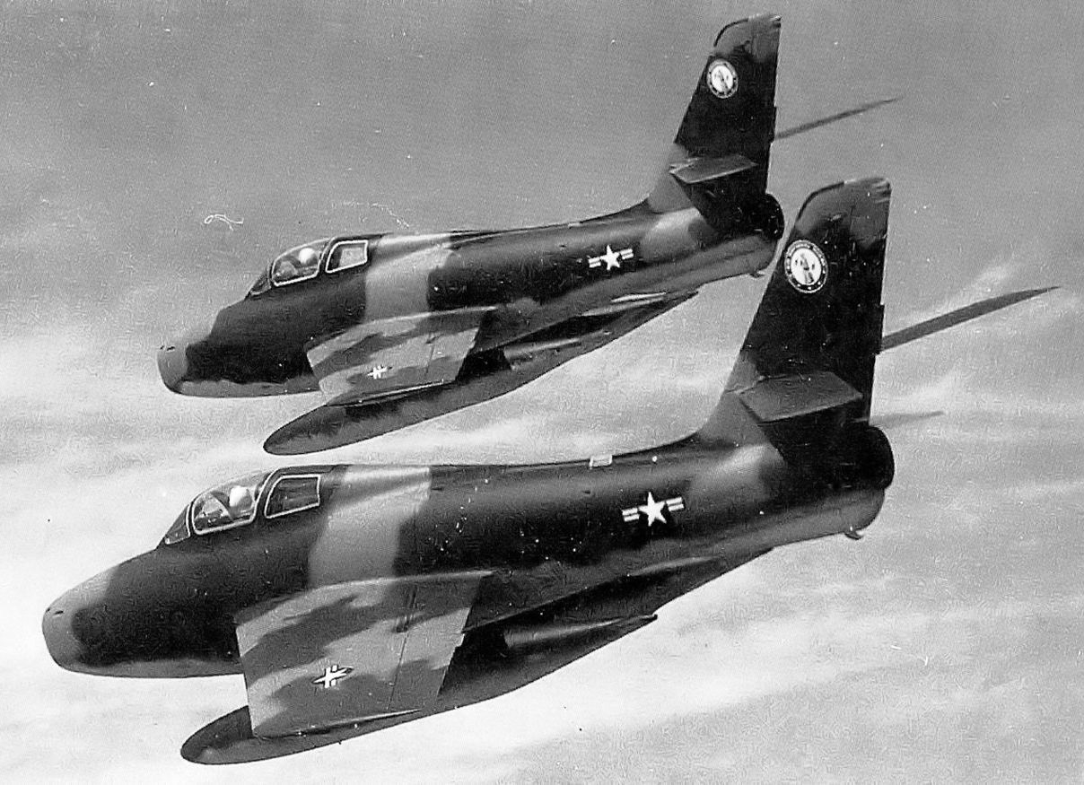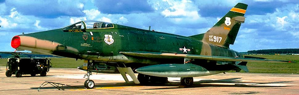 Republic F-84F Thunderstreaks from the 163rd Tactical Fighter Squadron, ca 1967 in Vietnam War camouflage.