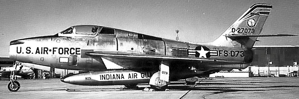 Republic F-84F-40-RE Thunderstreak (Serial No. 52-7079), 122nd Tactical Fighter Wing, wing commander’s aircraft. It is painted with tail stripes for the 113th and 116th TFS, Indiana ANG and the Ohio 112th TFS.