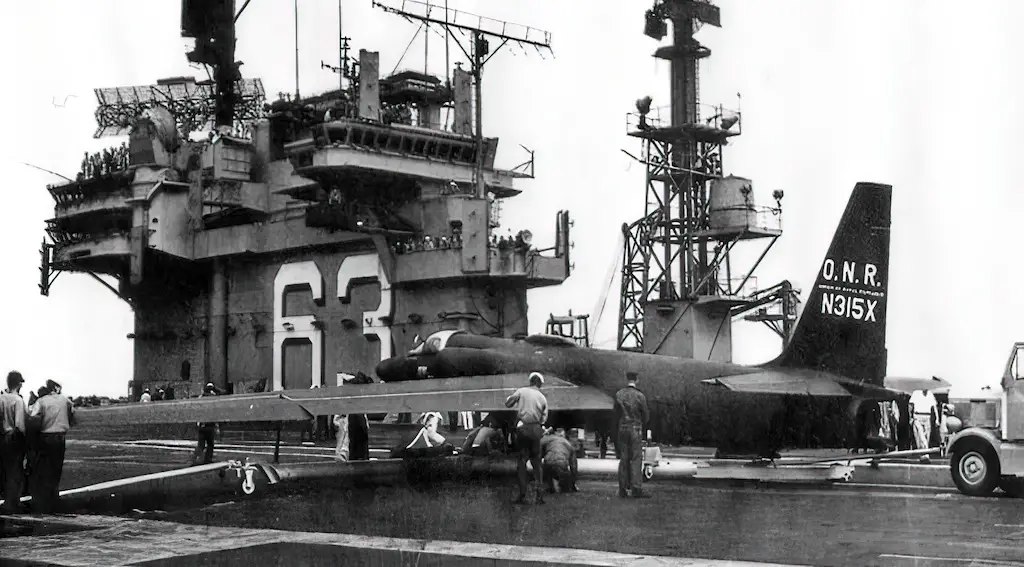 Lockheed U-2 Dragon Lady, on the deck of a USS Kittyhawk (CV-63)
