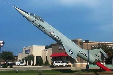 Lockheed F-104A Starfighter (Serial No. 56-0791), FG-791, mounted on a pylon at the Rayford Enterprises Building.