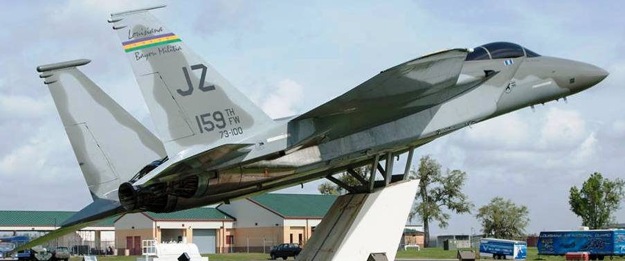 McDonnell Douglas F-15A Eagle (Serial No. 73-0100), 159th Fighter Wing, mounted on a concrete pylon..